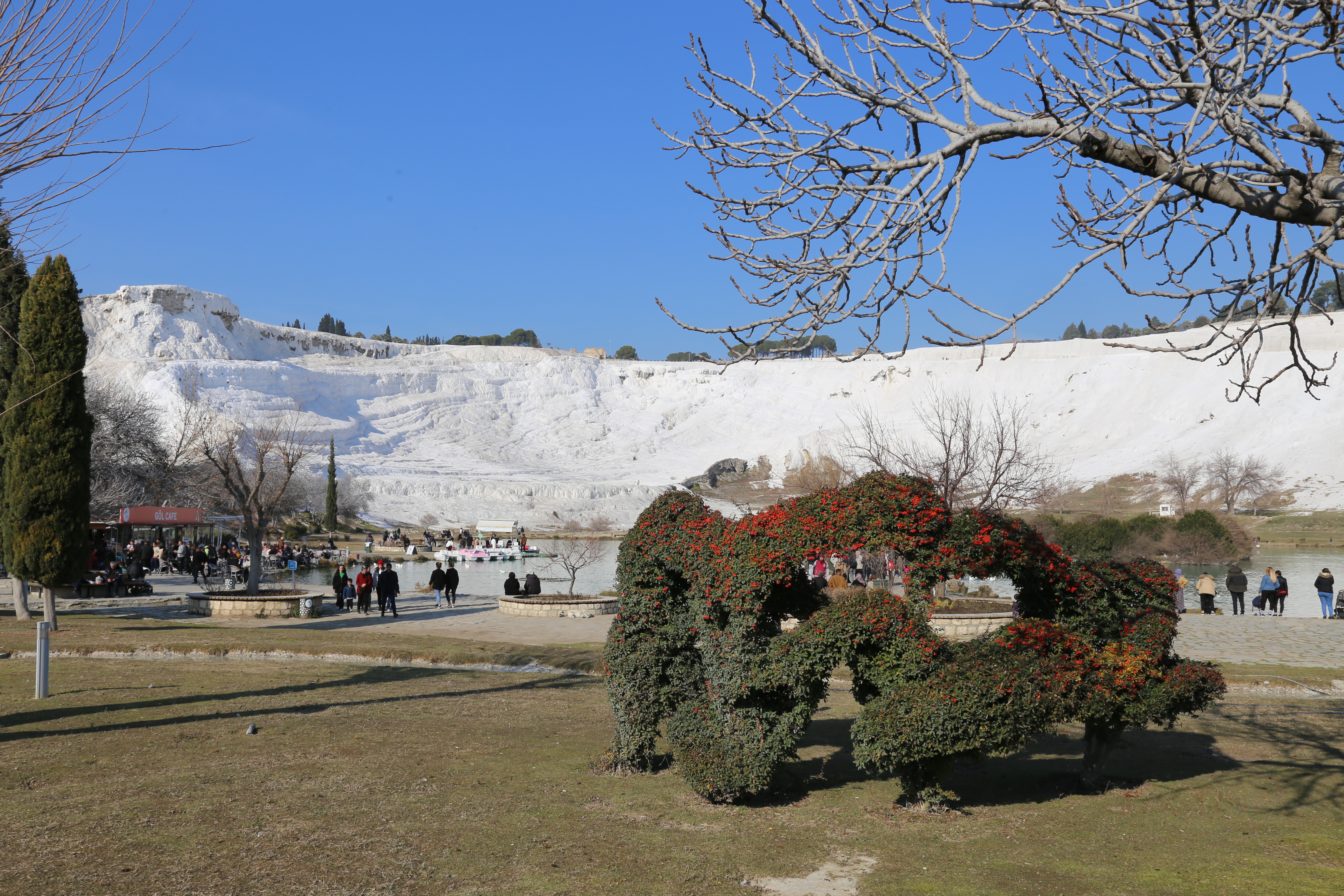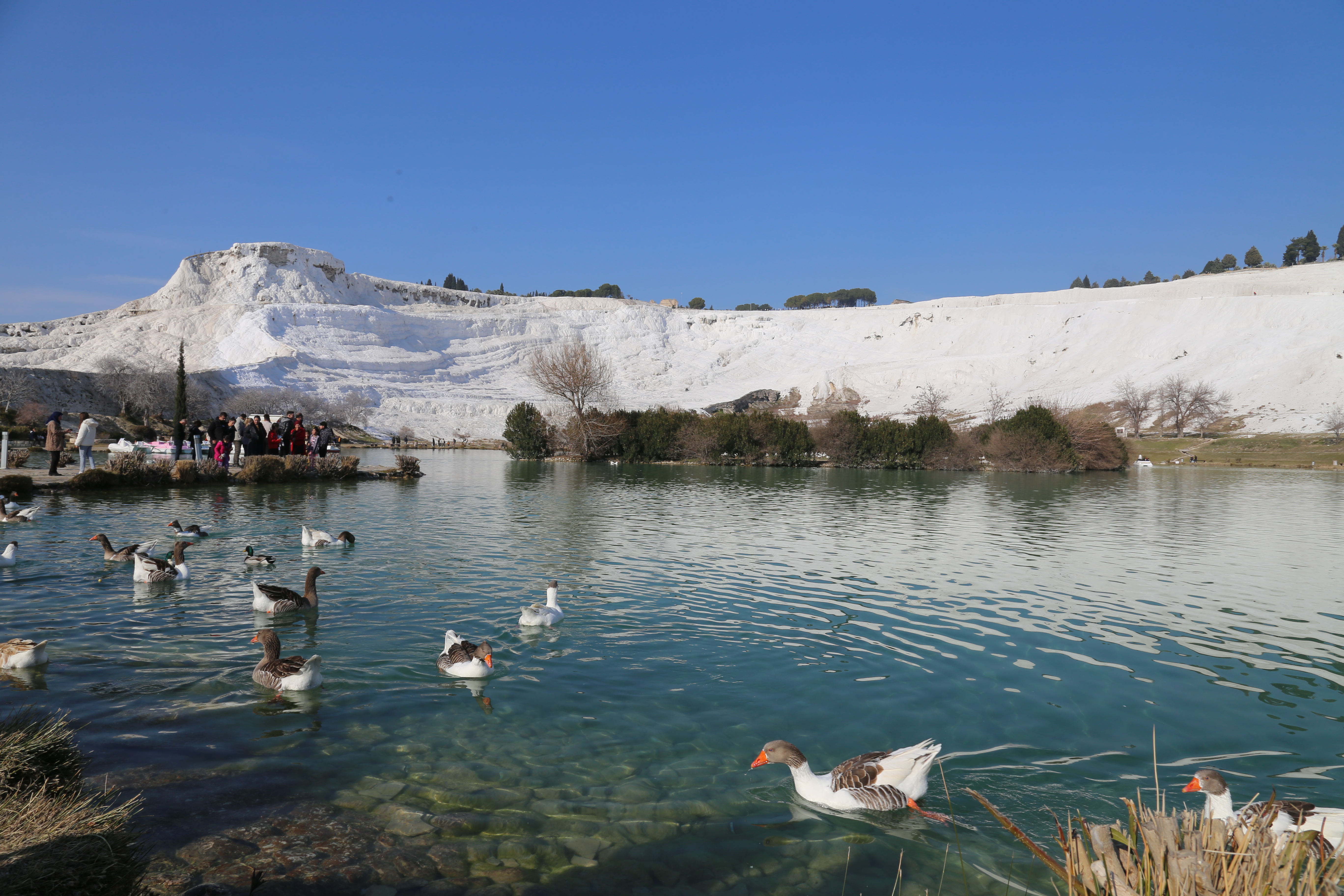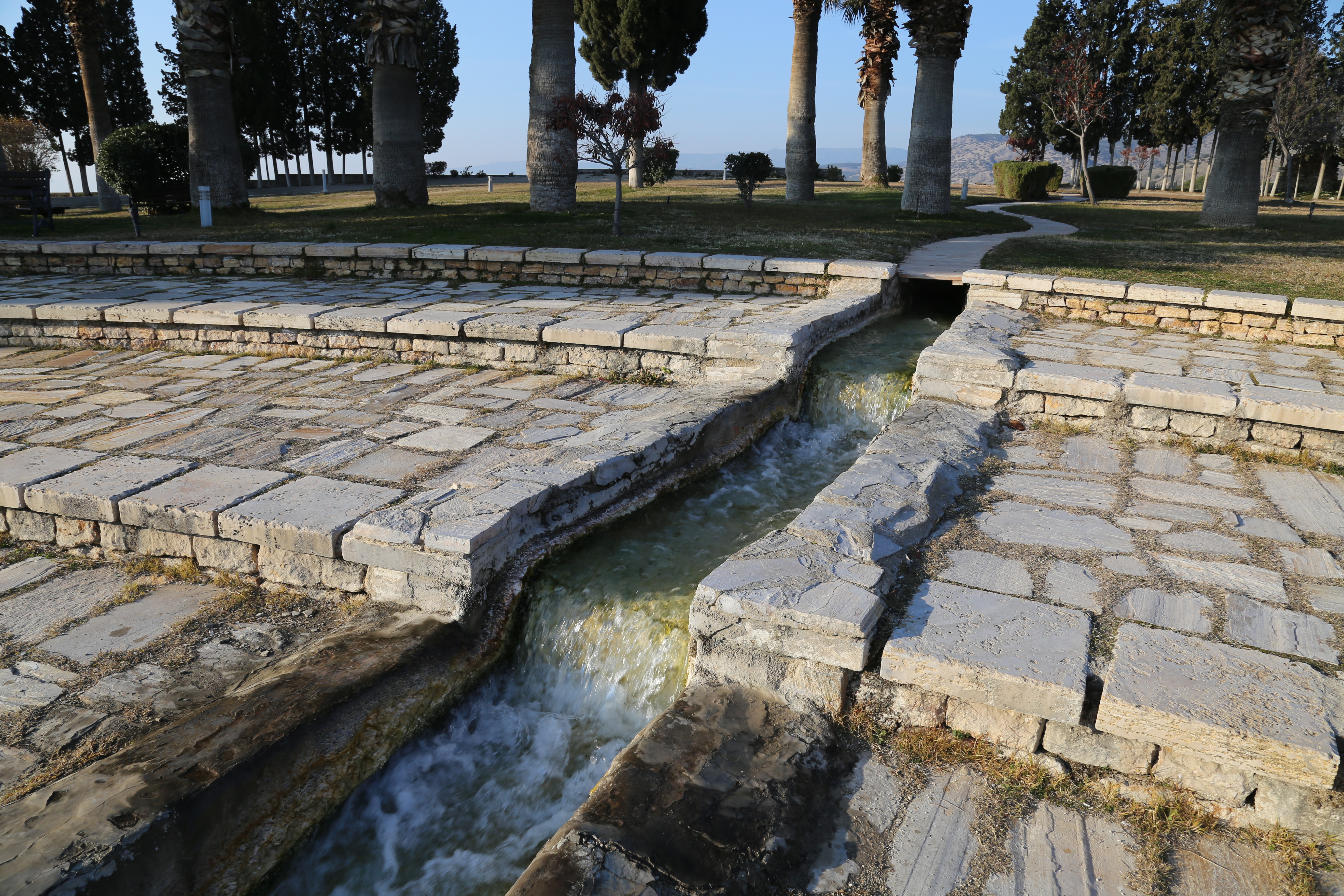 이 온천수는 섭씨 35도로 류머티즘, 피부병, 심장병 등에 효과가 있다고 전해진다. 이 때문에 치료와 휴식을 위해 그리스, 로마, 메소포타미아 등에서 많은 사람들이 몰려들었다. 특히 로마 시대에는 여러 황제와 고관들이 이곳을 찾았는데 하얀 결정체가 대지의 경사면을 온통 뒤덮은 장관을 감상하면서 심신의 치료를 겸할 수 있는 최고의 휴양지였기 때문이다.